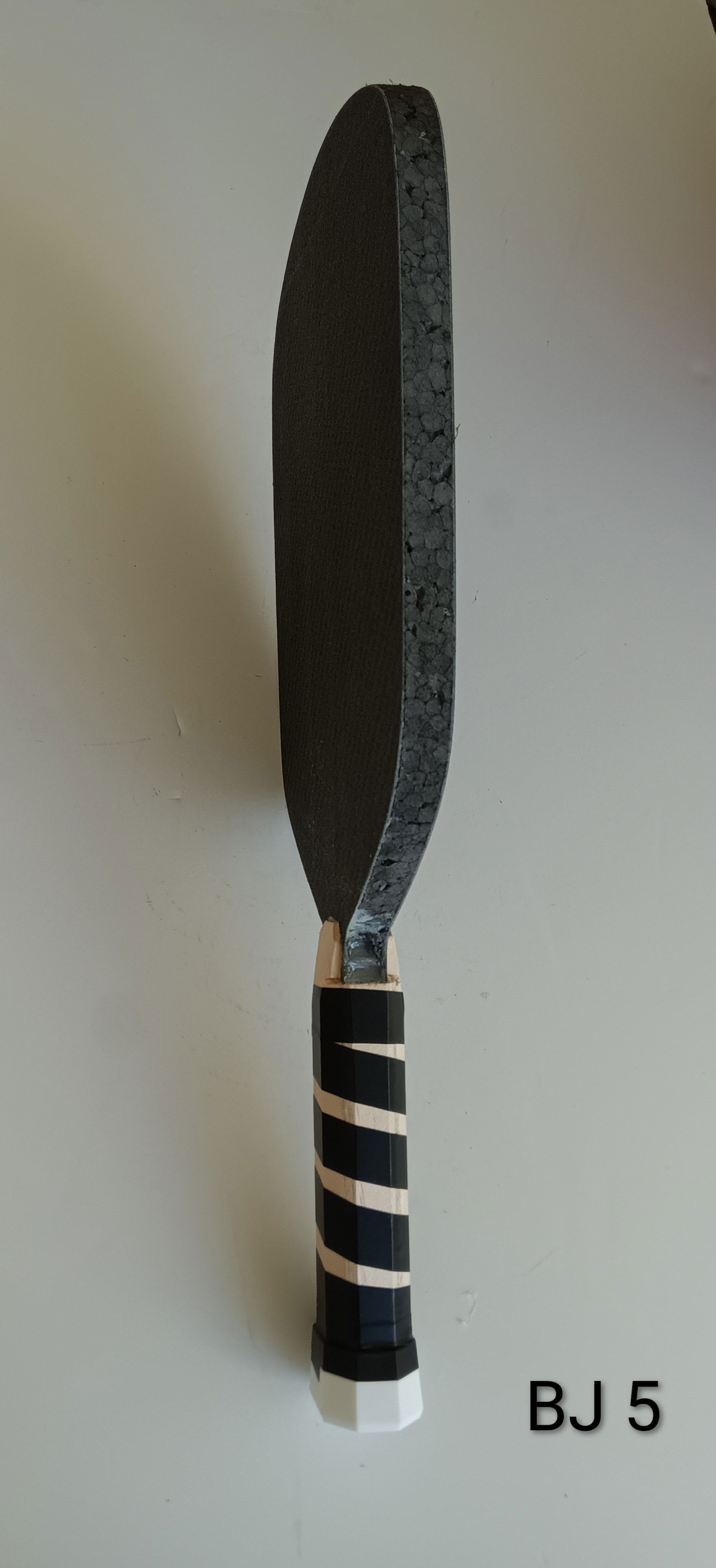 Carbon Fiber Weight: 7.55 ounces Grip Circumference: 4 3/16" Paddle Length: 16 1/2” Paddle Width: 7 3/8” Handle Length: 5 3/4” Paddle Face: 2 x 2 Twill Weave 3k/220g Carbon Fiber/textured, fiberglass Core Materials: 1/2" Polypropylene and EPP foam Core Thickness: 14 mm Edge Guard Type: U-shape (1/8" overlapping paddle face)/ Arcade Express, Spain Grip Style: Tennis octagonal/polypropylene, balsa & basswood Handcrafted in the USA