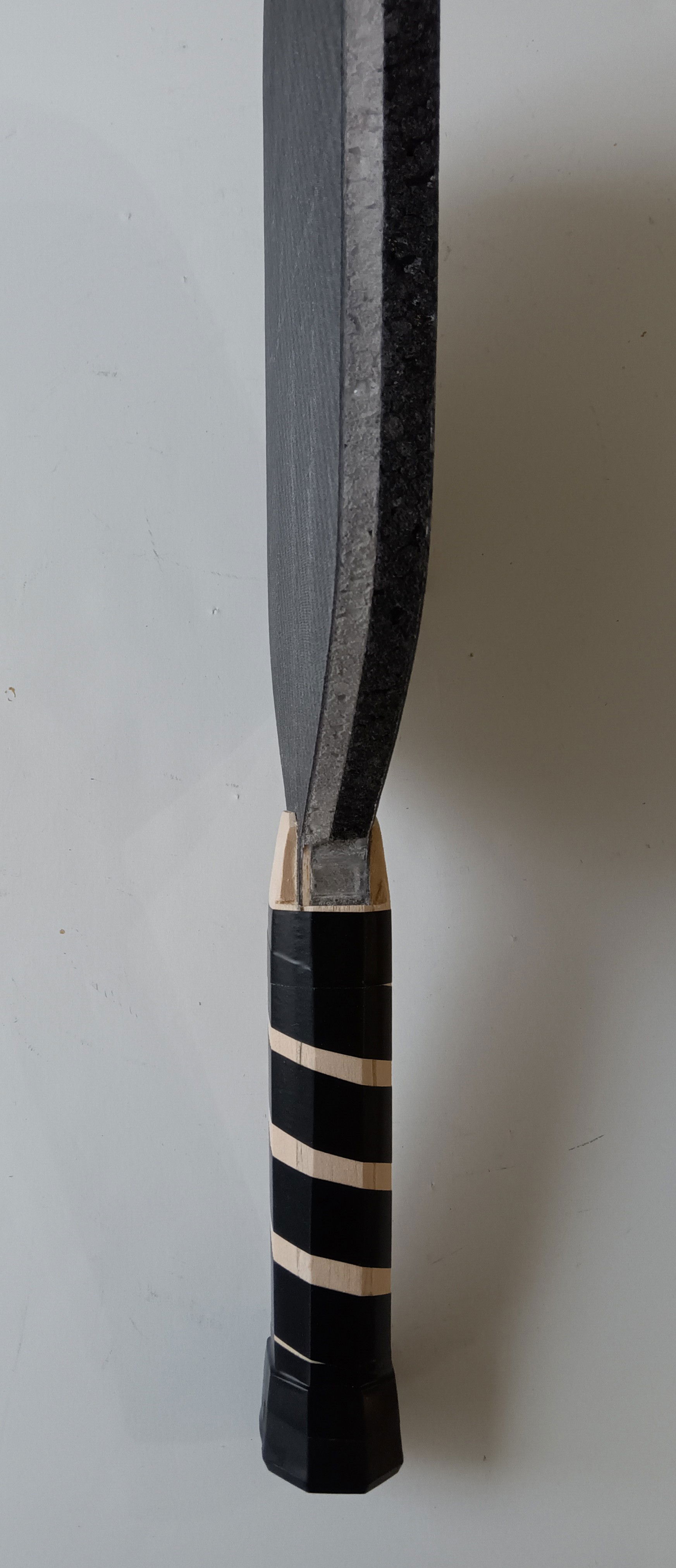 Carbon Fiber Weight: 8.25 ounces Grip Circumference: 4 3/16" Paddle Length: 16 1/2” Paddle Width: 7 1/2” Handle Length: 6” Paddle Face: 2 x 2 Twill Weave 3k/220g Carbon Fiber/textured, fiberglass Core Materials: 6mm EPP foam + fiberglass + 9mm EPP foam Core Thickness: 16 mm Edge Guard Type: Edgeless Black Band/ Cowles®, CT Grip Style: Tennis octagonal/ balsa & basswood pallets Handcrafted in the USA