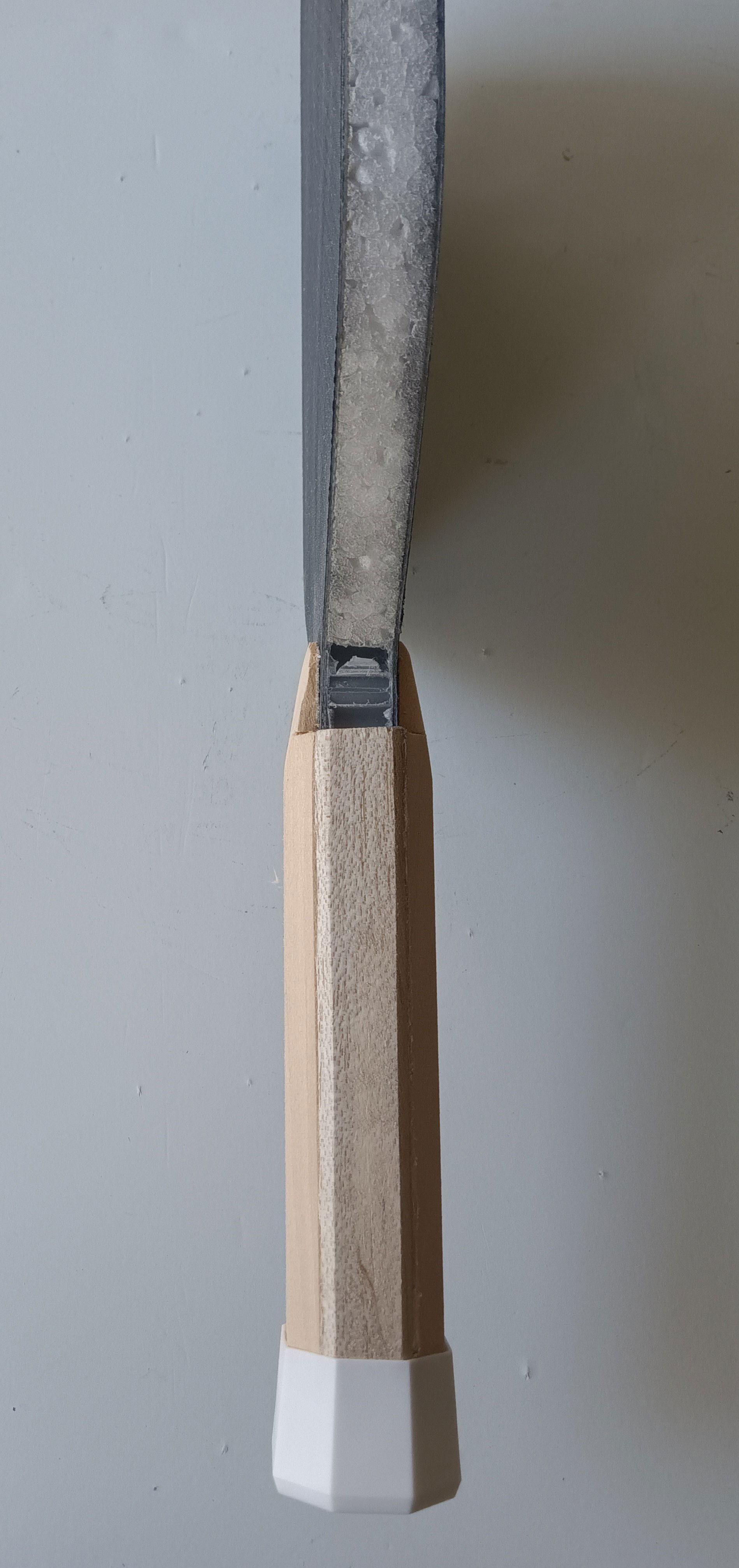 Carbon Fiber Weight: 7.4 ounces Grip Circumference: 4 1/4" Paddle Length: 16 1/8” Paddle Width: 7 5/8” Handle Length: 5 1/2” Paddle Face: 2 x 2 Twill Weave 3k/220g Carbon Fiber, fiberglass Core Materials: 1/2" EPP foam Core Thickness: 14.8 mm Edge Guard Type: U-shape (1/8" overlapping paddle face)/ Arcade Express, Spain Grip Style: Tennis octagonal/ balsa & basswood pallets Handcrafted in the USA