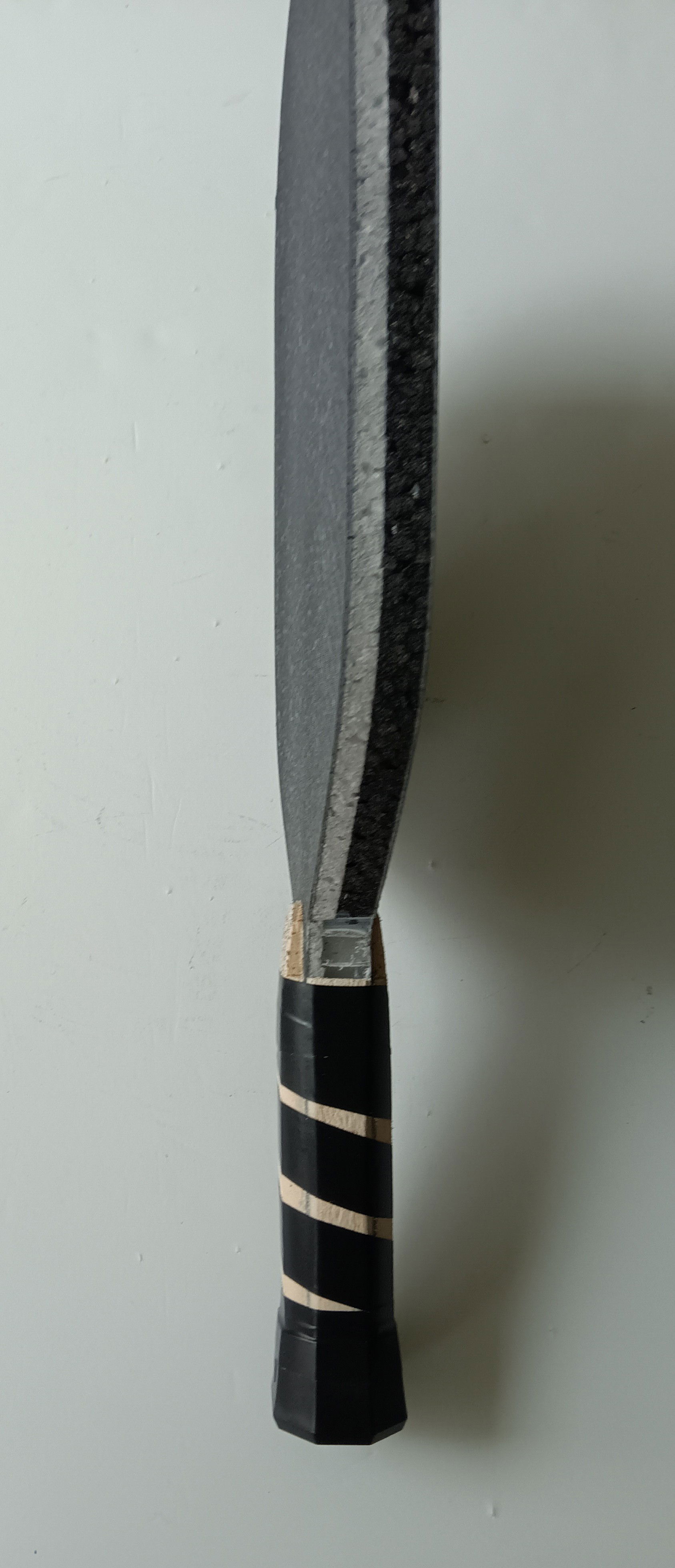 Status: Shipped, Shankar Pra, FL 1/6/2026 Carbon Fiber Weight: 8.2 ounces Grip Circumference: 4 1/4" Paddle Length: 15 1/2” Paddle Width: 8” Handle Length: 4 3/4” Paddle Face: 2 x 2 Twill Weave 3k/220g Carbon Fiber/textured, fiberglass Core Materials: 6mm(white) + 9mm(black) EPP foam Core Thickness: 16.8 mm Edge Guard Type: U-shape (1/8" overlapping paddle face)/ Arcade Express, Spain Grip Style: Tennis octagonal/ balsa & basswood pallets Handcrafted in the USA